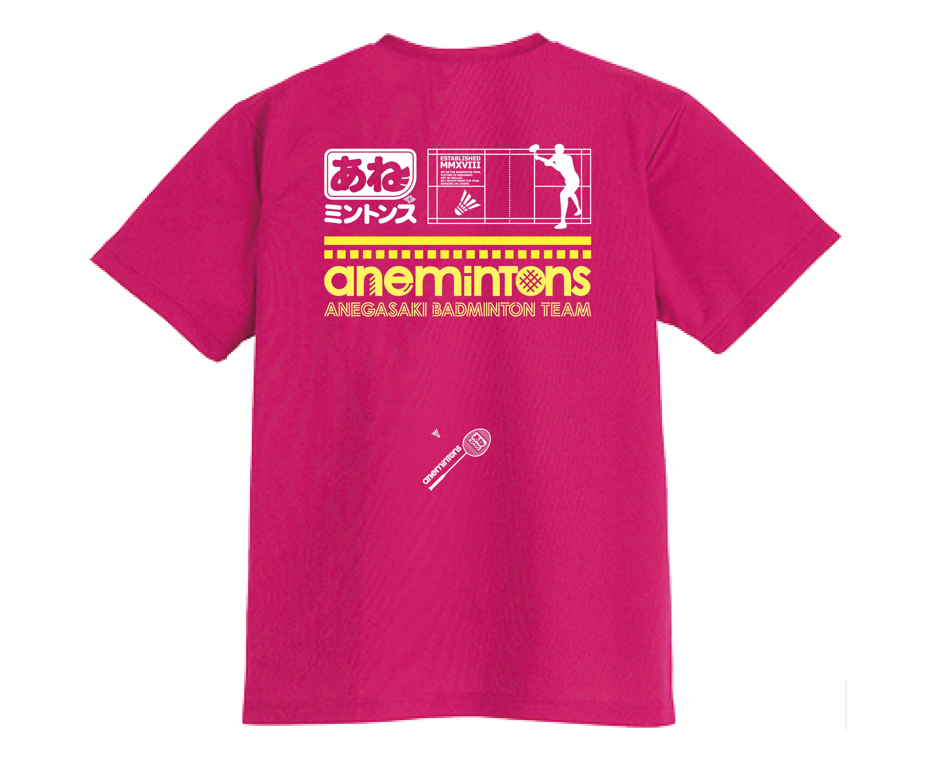 あねミントンず ドライ Vネック Tシャツ ピンク